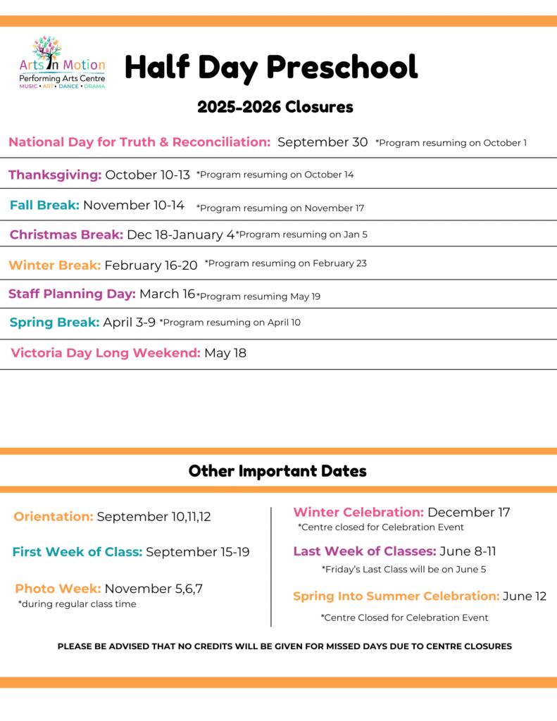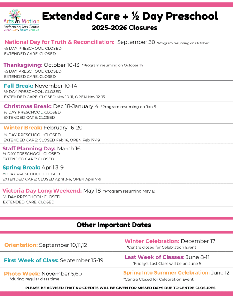 Holidays and Breaks Half Day Preschool Programming Half Day Preschool 2025/2026 Closures Extended Care Preschool Programming Extended Care Programming 2025-2026 Closures Full Day Programming Full Day Programming 2025-2026 Closures